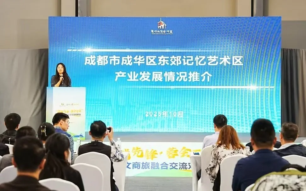 路演分享环节亮点纷呈。东方正火、漫光年等4家成华区重点文旅企业,与蒲江县明月村、铁牛村相关文旅企业同台亮相,围绕东郊记忆品牌打造、3D 打印场景创新、农文旅融合实践等主题展开分享,生动诠释了“文化 +”“科技 +”“研学 +”“农旅+”的融合魅力,展现了“文旅+百业”“百业+文旅”的广阔空间。